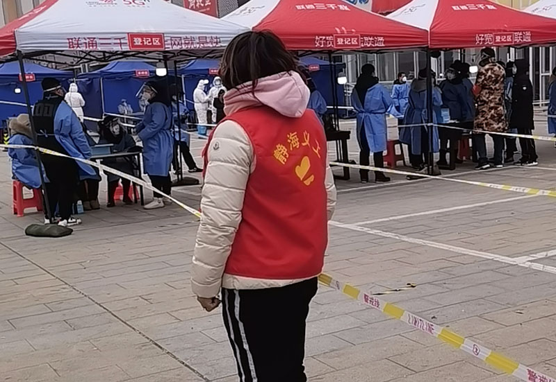 在各個(gè)核酸檢測(cè)工作點(diǎn),除了專(zhuān)業(yè)又敬業(yè)的醫(yī)務(wù)人員外,還有一些這樣可愛(ài)的人,她們做好現(xiàn)場(chǎng)秩序的維護(hù)工作,使得核酸檢測(cè)工作有序開(kāi)展。