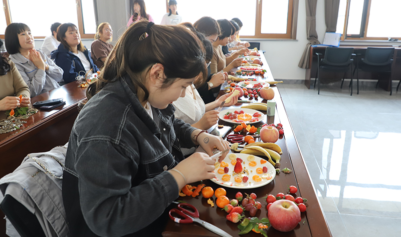 之后是才藝大比拼環節,比拼內容是利用身邊現有材料制作水果拼盤。王總也參與其中,與大家一同感受節日的快樂!經過十多分鐘的激烈比拼,一盤盤精美的作品展現在大家面前,不禁讓人感嘆瑞豐達女員工的心靈手巧。