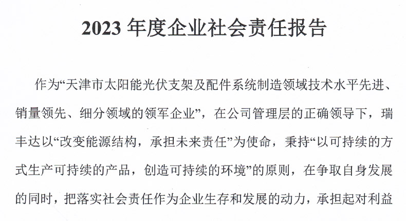 作為“天津市太陽(yáng)能光伏支架及配件系統(tǒng)制造領(lǐng)域技術(shù)水平先進(jìn)銷量領(lǐng)先、細(xì)分領(lǐng)域的領(lǐng)軍企業(yè)”,在公司管理層的正確領(lǐng)導(dǎo)下,瑞豐達(dá)以“改變能源結(jié)構(gòu),承擔(dān)未來責(zé)任”為使命,